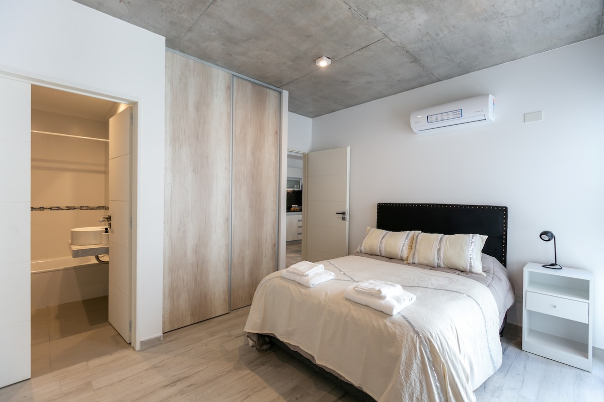 Spacious studio with separate kitchen, fully remodeled with all the style and amenities in the best location in Buenos Aires. In front of Alto Palermo shopping, close to parks, main avenues and subway. Double bed, Smart TV, full bathroom with bidet, shower and hairdryer, kitchen with refrigerator and freezer, toaster, coffee maker and microwave with grill. Automatic blackout curtain with remote control. Air conditioning, heating.