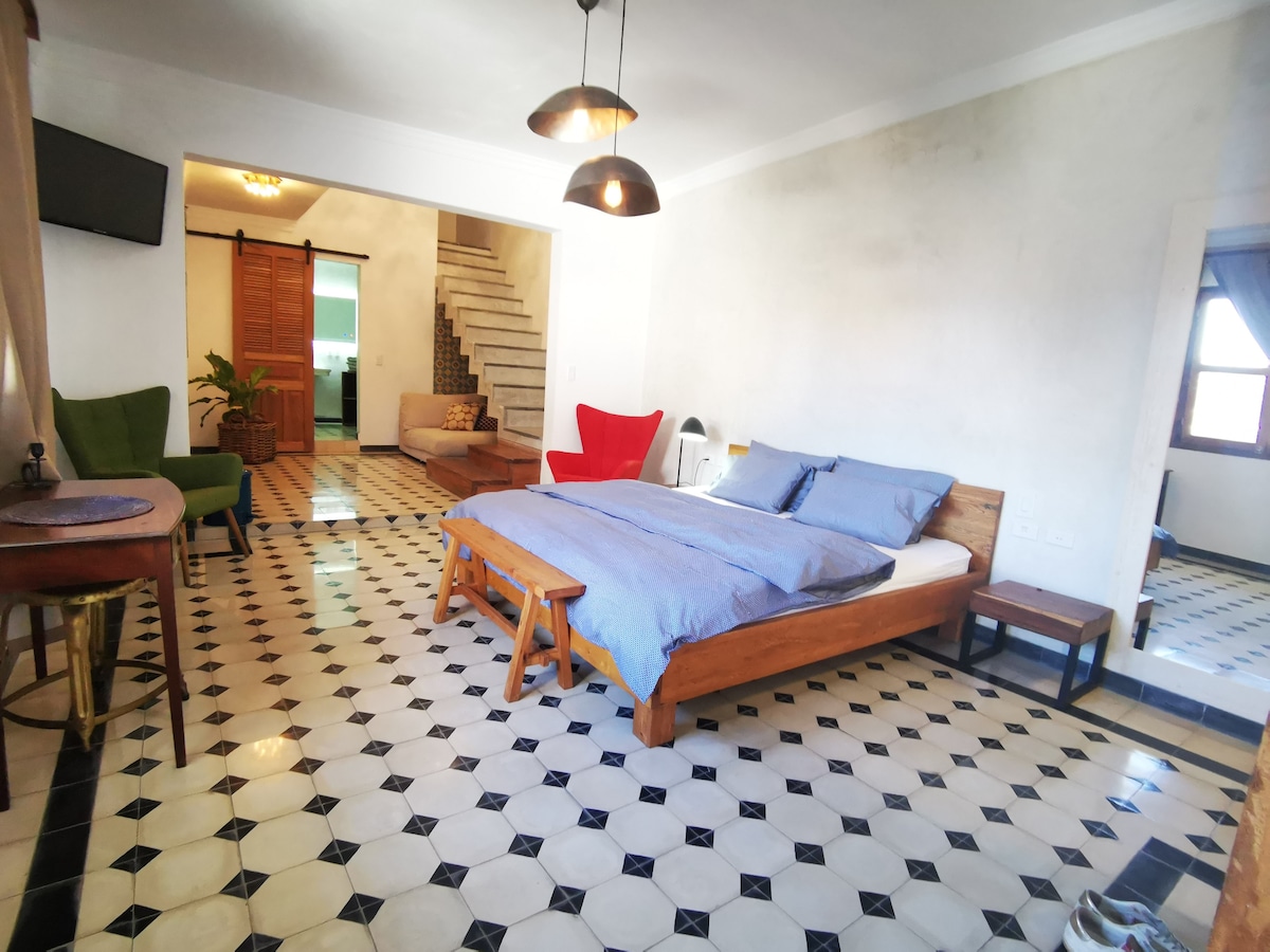 Colonial house located in the historic center of the city, just 3 blocks from the Plaza Mayor, which makes it special for its easy access to all places of interest, in addition to the comfort and hospitality that will make you feel like family. From the terrace you can enjoy a beautiful view. The air-conditioned room with a king-size bed, private bathroom, hot/cold water, minibar, hairdryer, safe, and fan, as well as an electric generator for lights and fan.