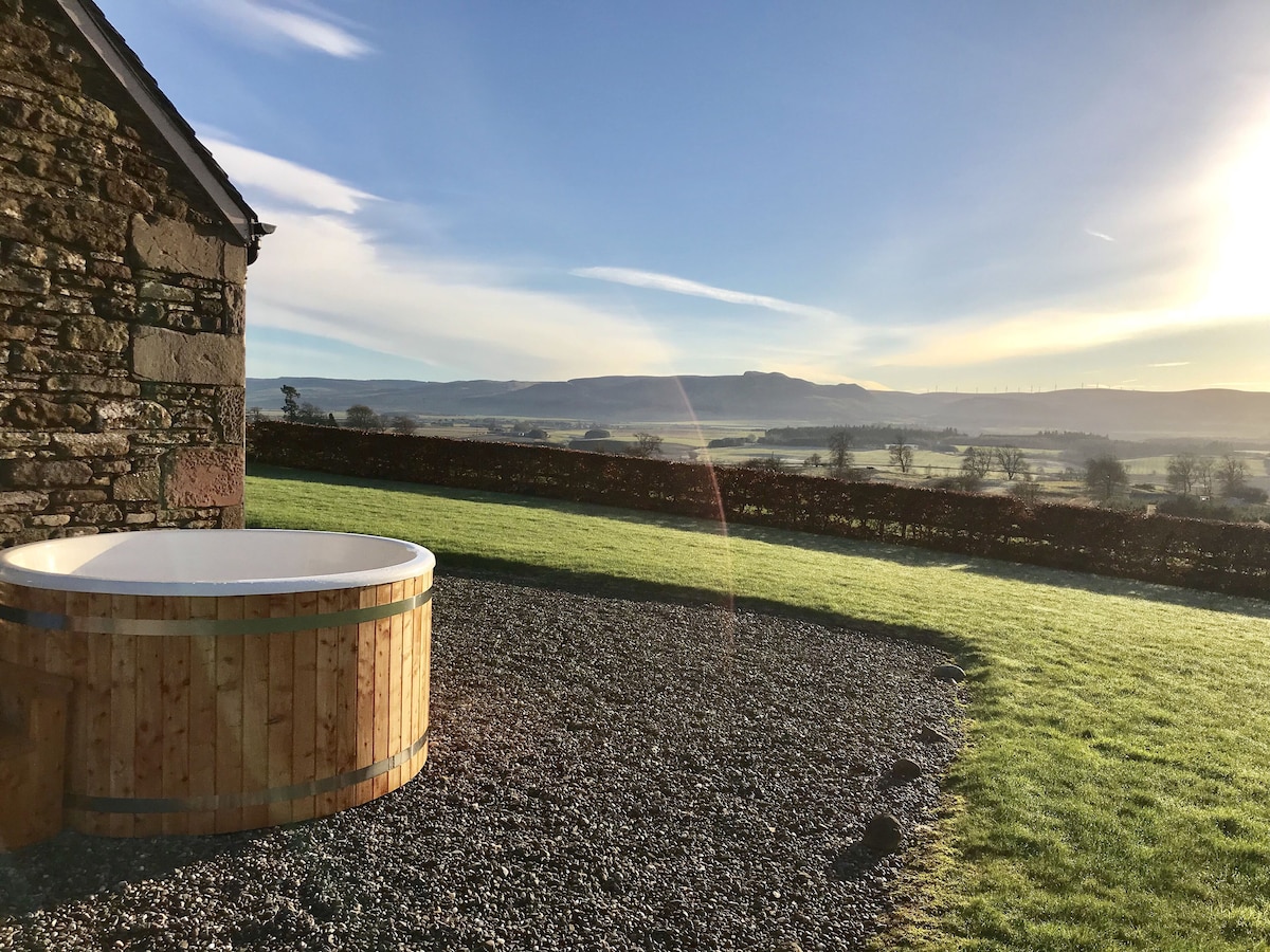 Welcome to The Captain’s Rest at FINGLEN! - Charming woodland path to your cabin (trolleys for luggage provided) - Hot outdoor double-ended bathtub - Outdoor firepits / indoor wood burning stoves - Large veranda with seating - King-size bed with luxury dressing gowns - Indoor bathroom featuring hot shower and eco composting toilet - Scenic views of wildflower meadows / river - Located near hiking trails and wild swimming spots - Eco Friendly! Solar powered, eco waterless toilet