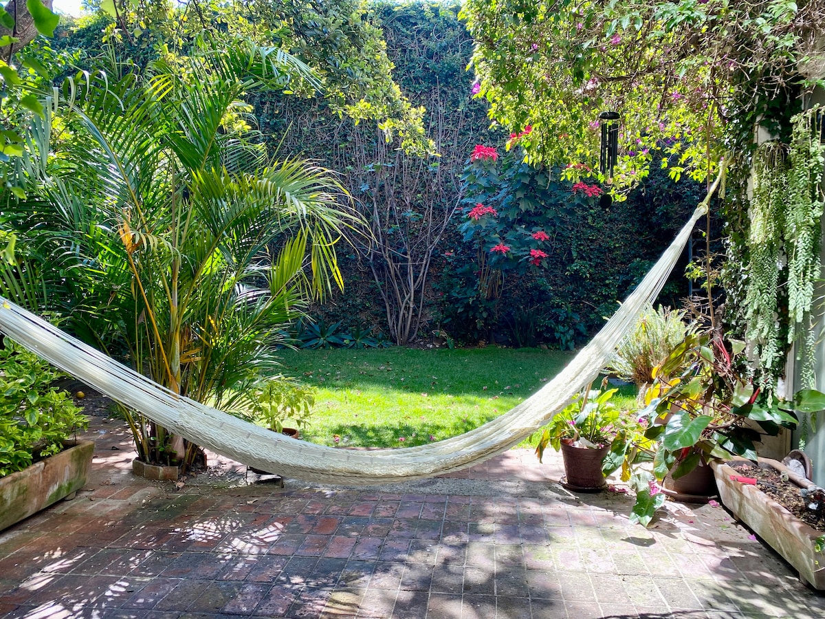 Casa México is located in a strategic and wonderful area as it is in the heart of the Condesa neighborhood opposite Parque México. This area is known for its beautiful tree-lined streets, great restaurants, cafes, shops of all kinds and galleries. The neighborhood is central because it is easy to get to several interesting areas such as La Roma, Polanco and Escandón. This area is also known for its family and bohemian atmosphere experienced every day on its streets. The apartment is located on the second floor above Café Toscano where you can enjoy a great breakfast included. On the roof you can enjoy a sensational view towards the treetops. The apartment has an equipped kitchen, living room, dining room, and bathroom. Cleaning service is also included There is a shared rooftop where guests can enjoy a great view to the park and sit down to work or hang out. I am available 24/7 through the app or WhatsApp to answer any questions from guests. Quiet, wooded area full of restaurants, cafes, parks and galleries. The best option to get around the area is walking, biking or Uber.