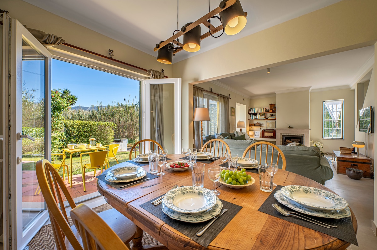 Apartamento reconstruído por arquitecto, excelente privacidade, exposição solar, com wifi, e praia a 150m. 1 suite com SPA e banho turco com aromaterapia. 1 suíte com terraço com vista mar, tela de projeção de cinema. Sala com vista de mar, rio, e terraço, onde poderá disfrutar de uma zona de estar e de um barbecue com grelha em ferro forjado. Perto de restaurantes, cafés e supermercado, e estação de comboio. Ar condicionado e piso aquecido em todas as áreas, TV 4K e box independente por suíte.