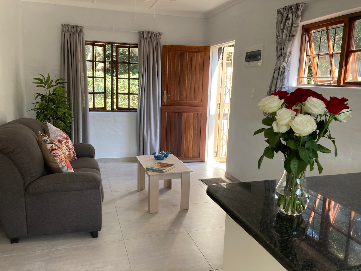 Off-grid! The lights are always on in this bright, modern, industrial styled garden cottage. The perfect spot for a break away from the noise and bustle. A 10 minute walk or 2 minute drive will take you to the swimming beach and nearby grocery shops, take-aways and restaurants. Just 25 minutes away from the city of Durban, this quiet spot makes for the ideal holiday or business stay. Please note: We do not permit parties on the property. Day visitors are only allowed by prior arrangement.