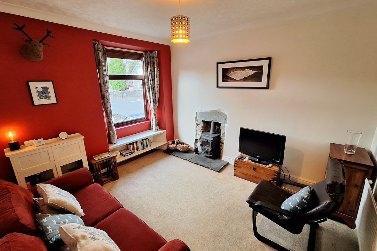 This cosy cottage is situated close to the centre of Ambleside. Take a seat in the bay window, relax and enjoy the spectacular idyllic views over Ambleside and beyond. Stroll into the village and enjoy the cafes and restaurants or take one of the stunning Fell Walks that Ambleside has to offer. The contemporary cottage is fitted out to a high standard, including central heating and modern appliances. The lounge and both bedrooms have breath taking views of the Fells or Lake Windermere.
