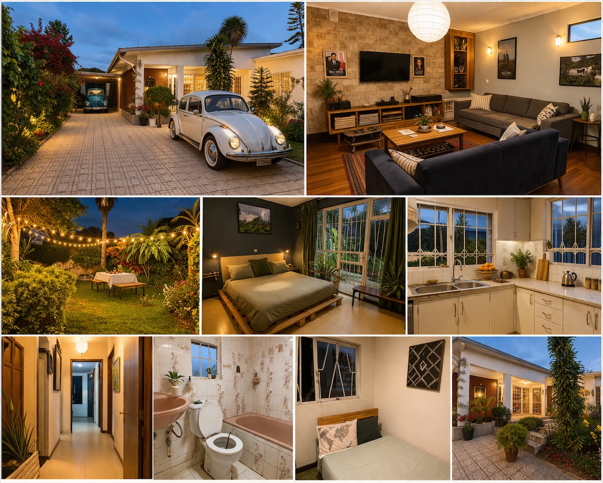 Welcome to The Beetle House Addis — a unique Afro-modern villa just 2 minutes from Bole International Airport. Set in a spacious private compound, this home features 2 bedrooms, 2 bathrooms, a cozy living and dining area, and a fully equipped kitchen. Enjoy a lush garden, outdoor firepit, and iconic vintage Beetle cars that make this stay truly special. Perfect for travelers, creatives, and small groups seeking comfort, style, and a memorable Addis experience.