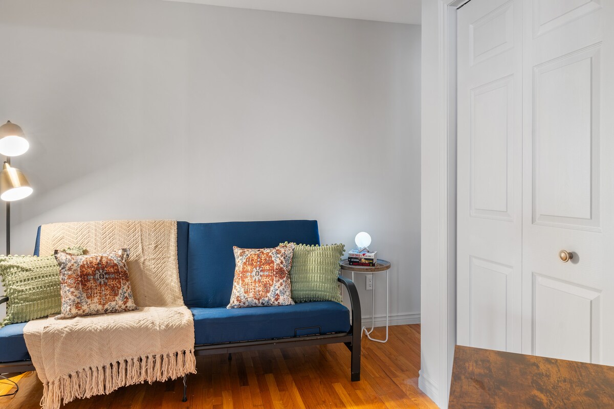 Welcome to our cozy and stylish one-bedroom basement apartment with a separate entrance, located in the peaceful North-end of Moncton. Inside, you’ll find a spacious bedroom with a queen-size bed, a living room with a TV and internet, and a fully equipped kitchen with a dining area. There’s also an office space for remote work, a bathroom, and a private washer and dryer. The living room sofa pulls out to accommodate one adult or two children, making it ideal for small families or extra guests.