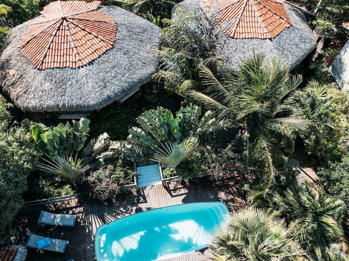 Umoya is the perfect place for families or groups of friends to enjoy holidays or weekend getaways. The villa features 4 spacious private suites distributed across 2 charming bungalows. At its heart, an open-plan outdoor area offers a swimming pool, barbecue, a fully equipped modern kitchen, and a cozy lounge with TV — all surrounded by a lush tropical garden. The beach, restaurants, and shops are only a short walk away. Come and relax with us!