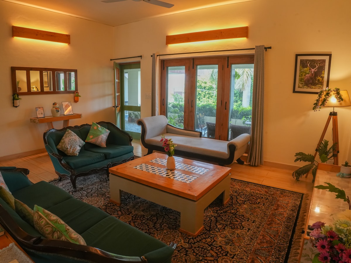 Ideal for large families or group getaways, this spacious 6-bedroom villa offers ultimate comfort and privacy, with attached bathrooms in every room. The villa features a fully equipped kitchen with a refrigerator, stove, microwave, and all essential cookware. Guests can enjoy a cozy living room, dining area, free Wi-Fi, air conditioning, and daily housekeeping. Perfect for a peaceful and extended stay, the villa provides a homely atmosphere with plenty of space for everyone to relax and unwind.