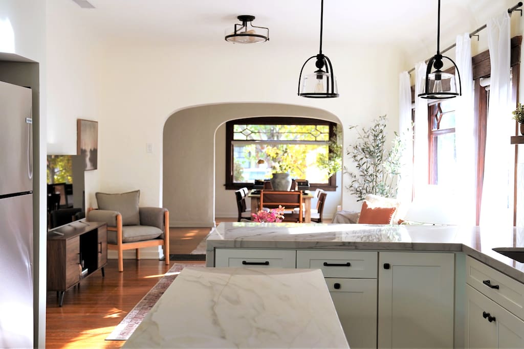 Nestled in the quiet & residential hills of Silverlake, this eclectic & elegant home is steps away from hip bars, cafes and Trader Joe's. A bright living space offers unimpeded views of Griffith Park. The secluded patio overlooks the lush tropical garden, teeming with succulents & cacti, a giant bird of paradise plant & a pomegranate tree. Enjoy a peaceful and magical stay!
