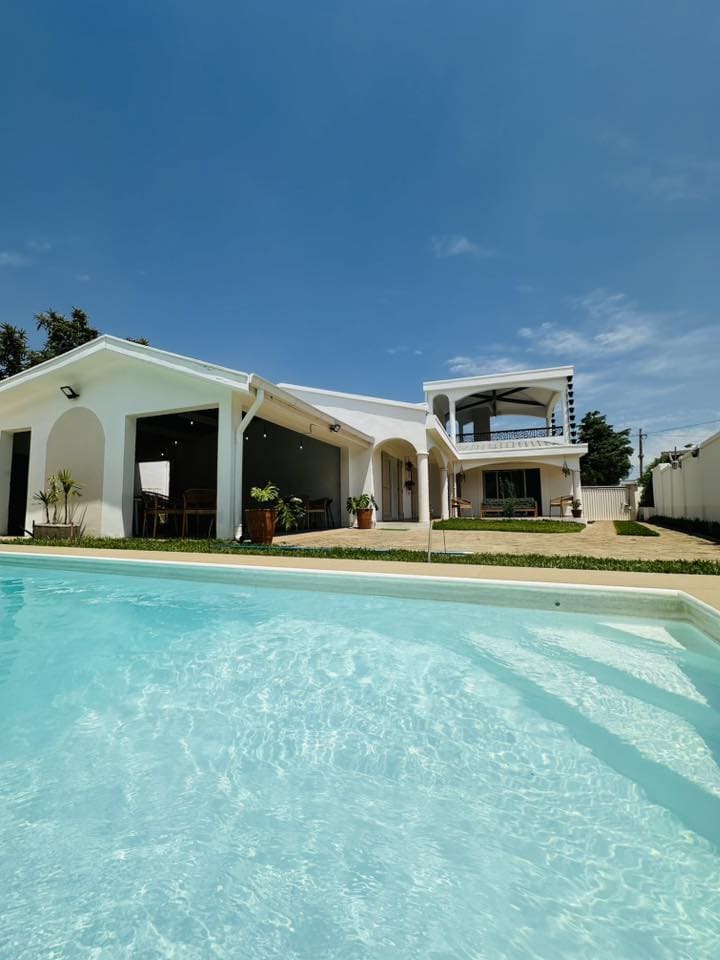 For your stays in Tana.. I offer a beautiful and peaceful villa of 300 m² furnished with swimming pool and garden, in town, not overlooked, including - 1 large master suite (dressing room, bathroom and toilet) of 45 m² - 3 large bedrooms - Very large living room of 95m² - A beautiful canopy overlooking the pool - a large equipped modern kitchen - 2 more toilets -1 bathrooms -Infinity swimming pool - Large garden with living room - Parking Sleeps 8 people Included: Unlimited Wi-Fi, security