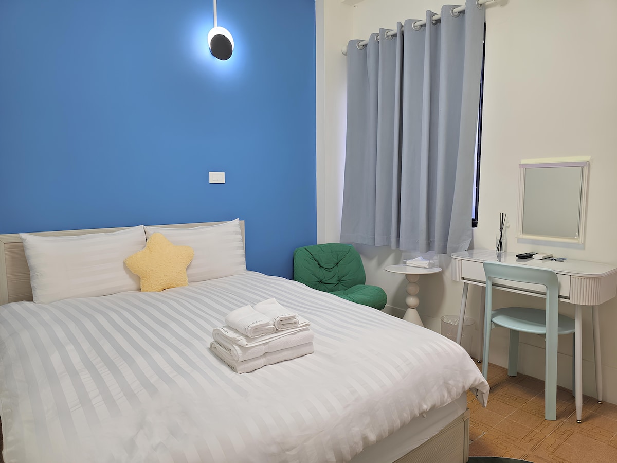 ★房間以我們從歐洲帶回的荷蘭古瓷為裝飾,希望您在荷風古典藍中,度過美好的時光! ★我們為您準備了積木與積木牆,大朋友小朋友都可以發揮創意哦!(歡迎把您的作品留在牆上哦!) ★我們準備了兩張超好睡的高級乳膠床墊,睡過的都說讚! ★2人預定一律準備1張雙人床,如需加床須加200元加床費用。 ★為了提供不同亮度的照明,我們提供了各種直接與間接燈源,請按需求使用。 ★住2人最舒服,最多4位。 我們另外提供付費桃園/高雄機場、嘉義高鐵站、新營火車站接送服務,請私訊諮詢。