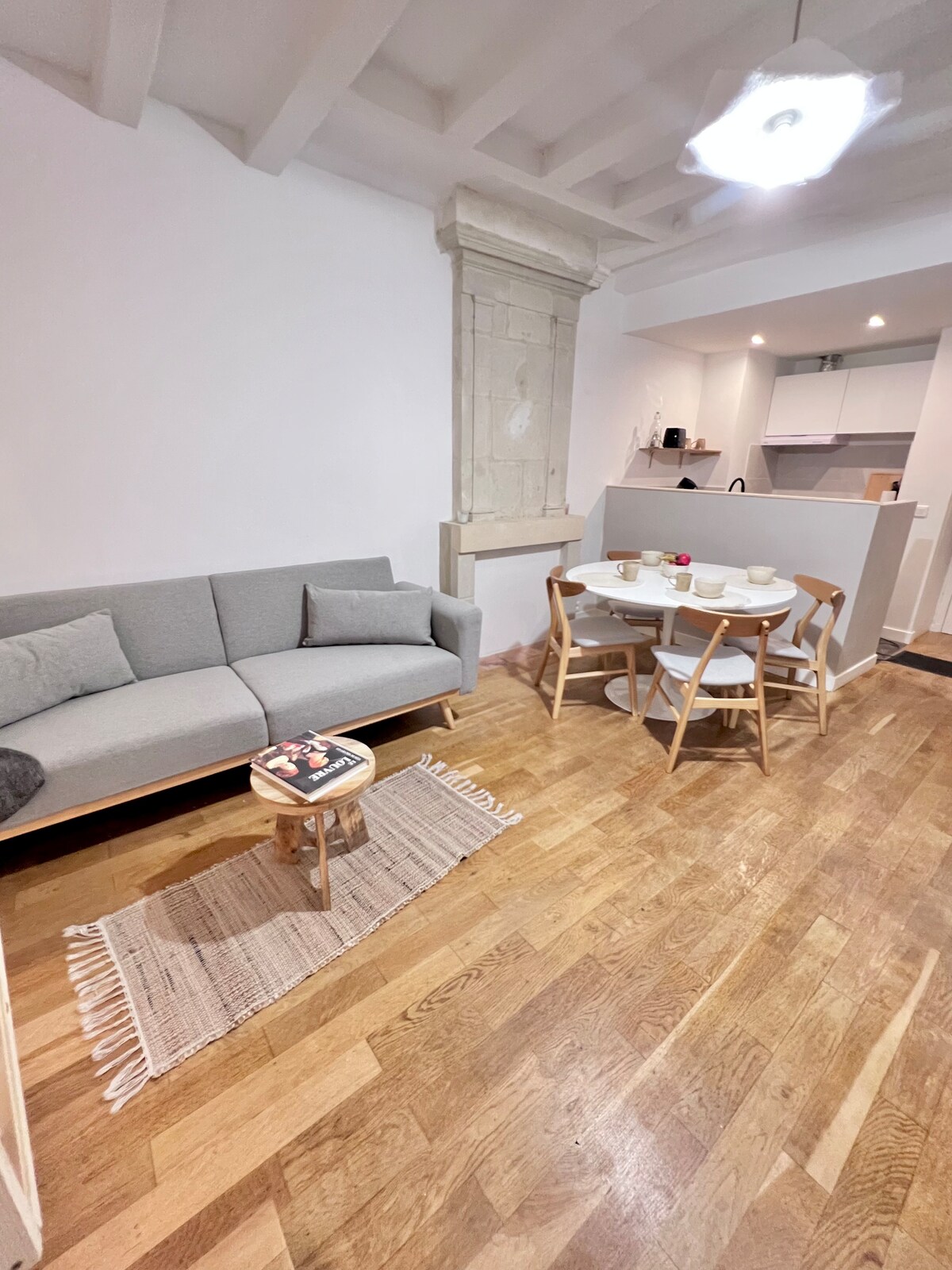 Come and spend a peaceful stay in this 50 m2 duplex, ideally located to enjoy all the assets of the medieval town of Chinon. Access is via an inner and private courtyard. Ground floor Living room with sofa bed, orange TV box, standing dining table for 4 people. Equipped kitchen (washing machine, microwave grill, dishwasher, coffee maker, ...) Bathroom with shower, toilet and sink. Second floor Bedroom 25 m2, bed 140/190 new bedding. Folding crib available Sheets and towels are provided...
