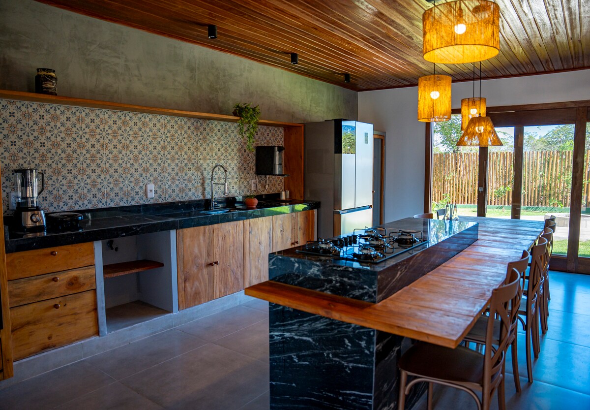 Casa Tujuba — inspired by native Brazilian bees — is a large and cozy space with privileged views of the riparian forest of the Lençóis River. Located a few meters from the historic center of Lençóis, our house offers a pleasant experience for those seeking rest and practicality. It has three en-suites, a living room, balconies, a generous yard, a fire pit area for memorable nights, and a well-equipped indoor and outdoor kitchen.