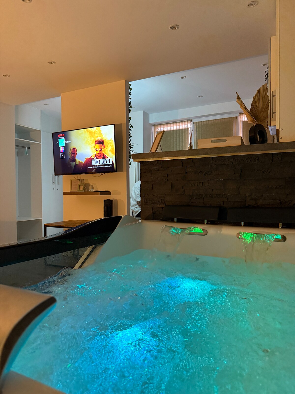 La Suit’s Charmes vous accueille dans une ambiance chaleureuse, Cocooning et apaisante. Rêver, Se reposer, Se regarder, Se sentir, S’enlacer, Se retrouver, Se confiner…S’aimer…Venez profiter de la Suit’s Charmes!! Suite de 75m2 , Face Gare de Belfort Jacuzzi Sauna Lit King Size TV 4K smart Tv, Netflix, TV Orange Wifi Cheminée Ciel Étoilé Douche XXL multi-jet (ciel douche indisponible à ce jour) Tout linge fourni Option possible: balançoire érotique/ Champagne/ appareil électroménager party