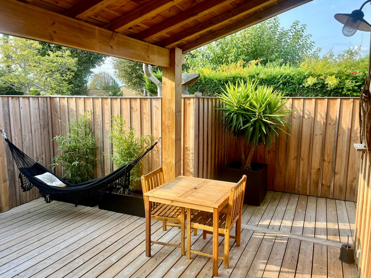 With its location in the heart of Andernos and its ecological wooden construction typical of the region, our cabin invites you to fully experience the spirit of the basin during the holidays. Quietly located at the end of a cul-de-sac, it is ideally located close to the center, the beach and the oyster port of Andernos. The many nearby bike paths will allow you to easily get around on foot or by bike during your stay.