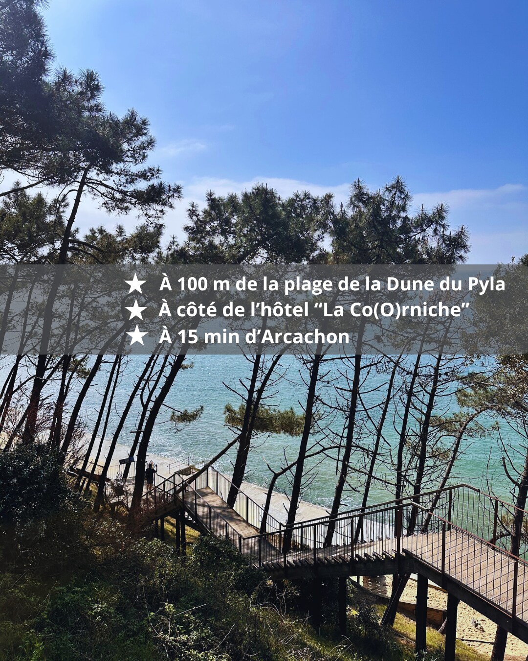 1st line apartment Bassin d'Arcachon, between sea and forest. Les Jacquets, Cap-Ferret peninsula. On the 1st floor of a 2013 wooden house, on a private road. Direct access to the beach. Comfortably air-conditioned 60 m². 1 bedroom with queen-size bed and natural latex mattress, shower room, toilet, laundry room with washing machine, baby equipment, dryer, large living room-kitchen with 1 queen-size bed-wardrobe. Kitchen equipped with electric oven, induction cooktop, microwave, dishwasher fridge. TNT WiFi.