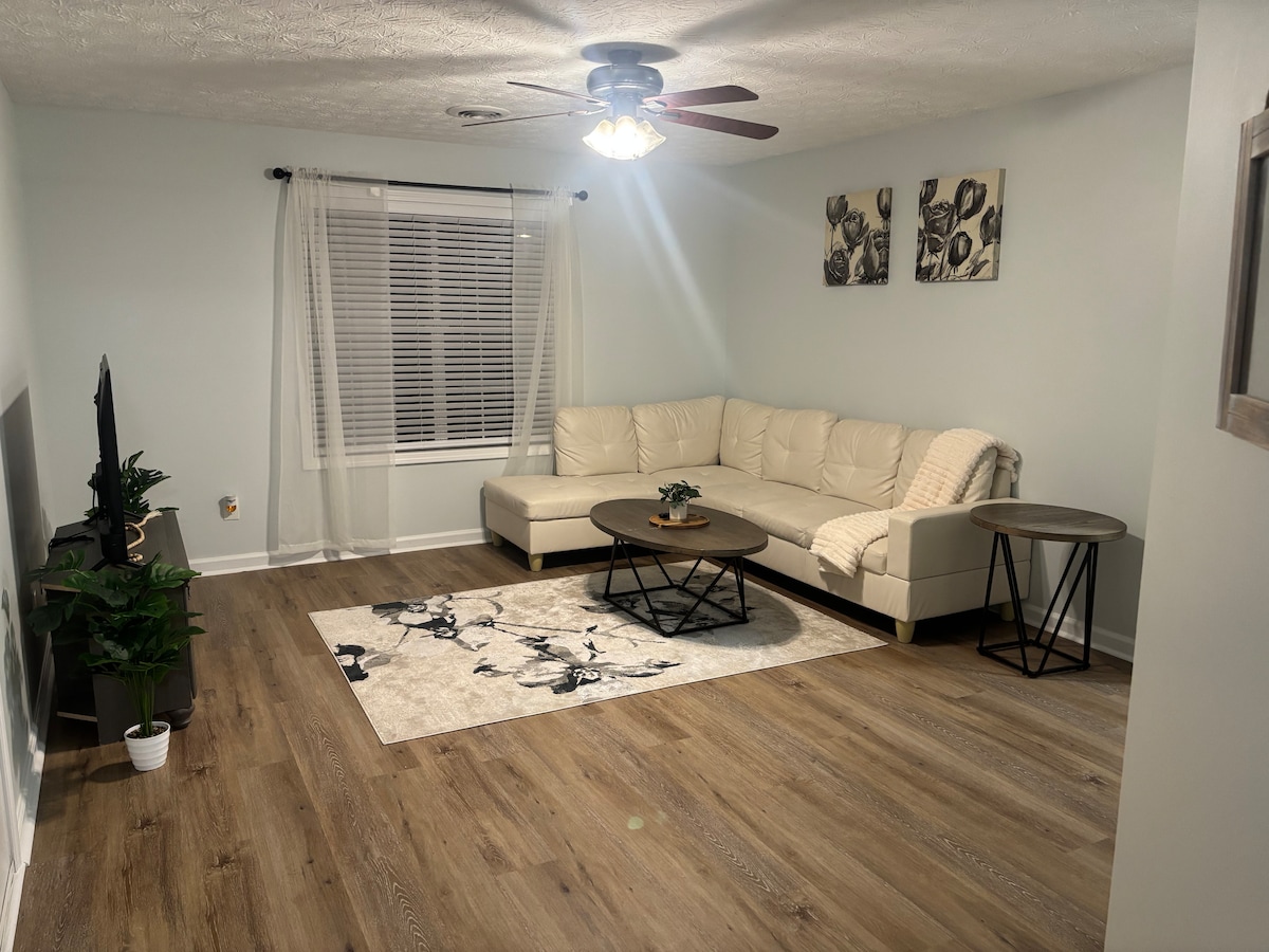 A bright and cozy one-bedroom apartment with a spacious and fully equipped large kitchen, new modern stylish bathroom, and extra sleeping space on a queen memory foam sofa pull out - perfect for a relaxing stay. Located just 15 minutes from downtown Knoxville and an hour from the Smoky Mountains, this downstairs unit has everything you need to explore the area or work locally and feel right at home. Great stay for UT events and game weekends! This space is located downstairs another unit above.