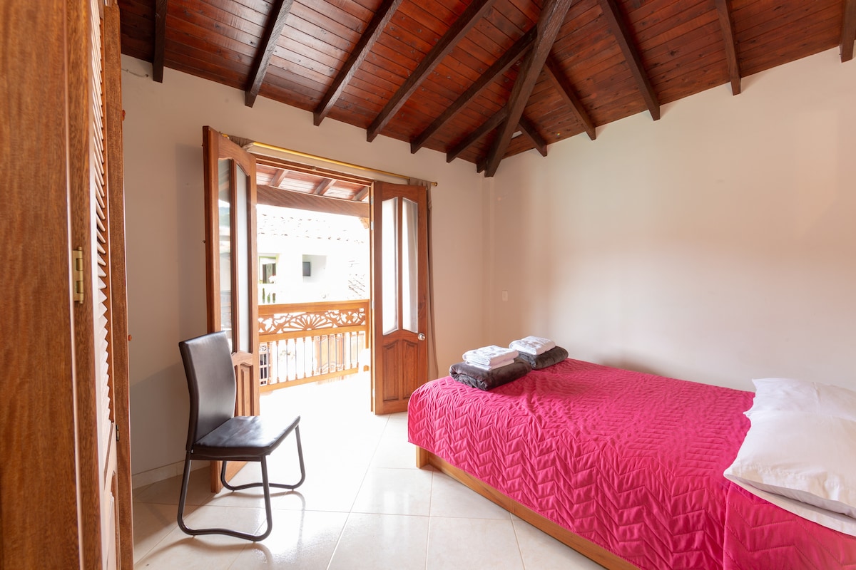 The most beautiful town in Antioquia welcomes you to this cozy and pleasant apartment that is located two blocks from the main park of Jardín (Antioquia). It is an apartment on the second floor with a balcony in the main room. It has 2 bedrooms, 2 bathrooms, 1 kitchen, and 1 laundry area. It's a second floor, so you have to climb stairs. We don't have an elevator.
