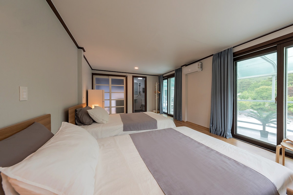 Hello, we are Onda, which is researching and providing various resting areas. I hope everyone who will be staying here will enjoy a comfortable and happy time. [Accommodation Introduction] The clear, beautiful and cheerful air of the upper valley in the deep forest of Wolaksan We will give you a healing time and space. [Room Type] Studio Type (1 Double + 1 Kitchen + 1 Bathroom) * Bedding is provided according to the number of people you have booked.