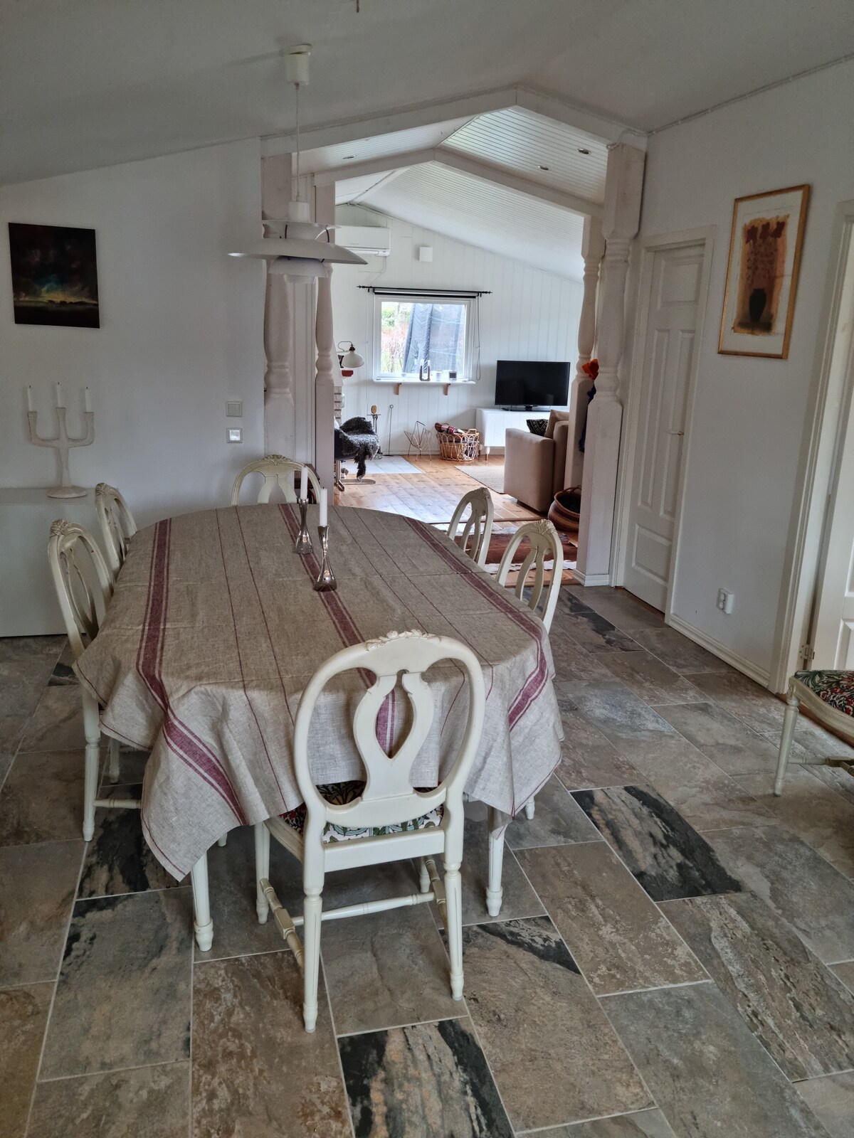 Take it easy at this unique and tranquil getaway near the sea and the beach. Here, the bed is made when you arrive so you can devote yourself to nicer things. Newly renovated tastefully decorated guest house in Skepparkroken, 100 m to sandy beach. Directly adjacent to cycling and hiking trails. Four beds, two in a double bed and two in a sofa bed. Sunroom, laundry room, A/C, fireplace, large balcony with flexible outdoor seating, barbecue, fully equipped kitchen, etc. Sheets and towels are included. Two bicycles are available to borrow.