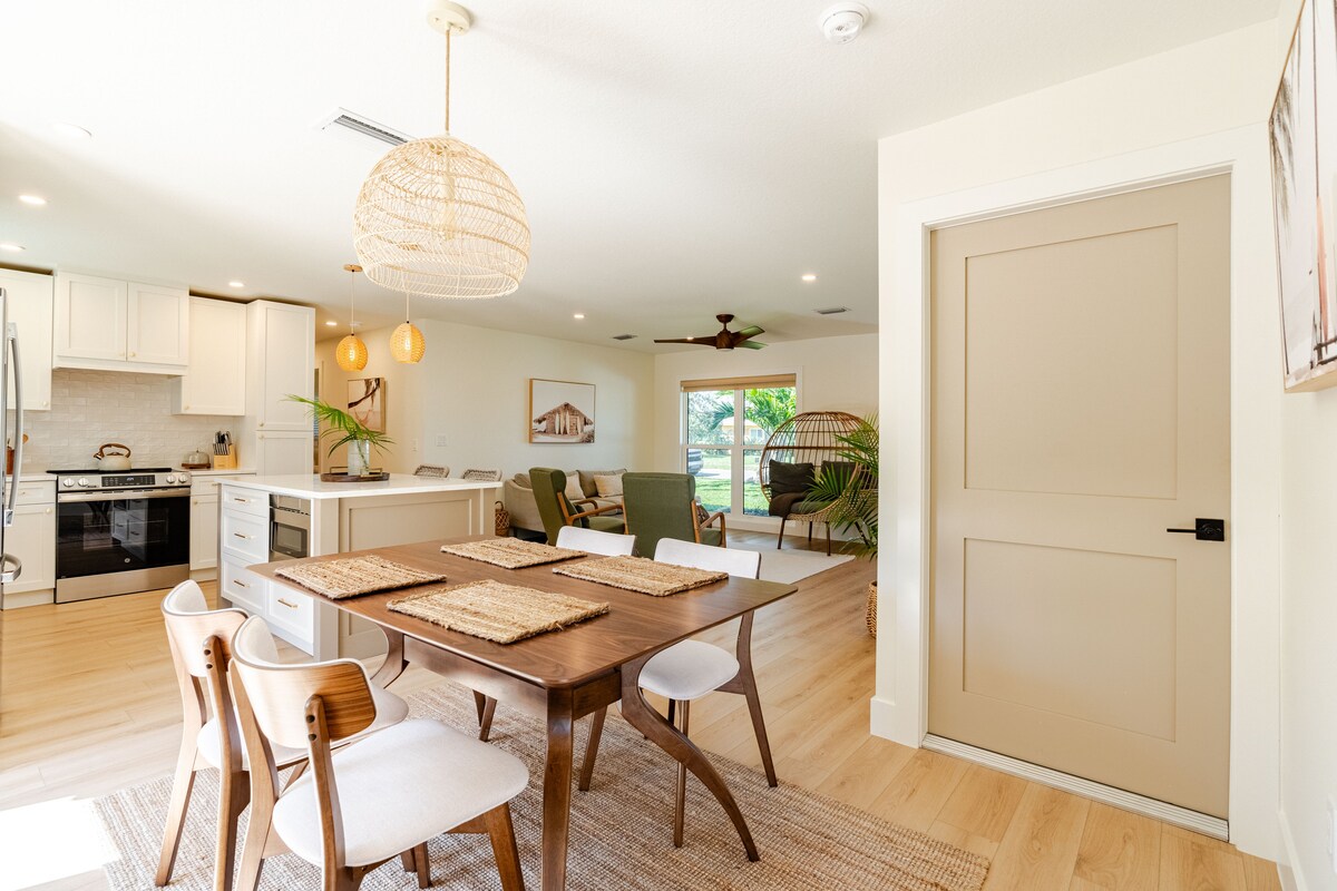 Enjoy your little slice of paradise at the beautifully decorated Orange Oasis! 3 bedrooms & 2 baths, plus a daybed with trundle. Heated Pool. High speed wifi & 4 TV's all with Hulu, Apple TV, Disney+, & ESPN. Vaulted ceiling, rainfall walk-in shower, washer & dryer, large fenced backyard, pool, garage parking, Weber grill, & a quiet safe neighborhood. The home comes fully stocked with Ziploc bags, cooking/kitchen essentials, coffee, beach essentials, & outdoor/indoor games.
