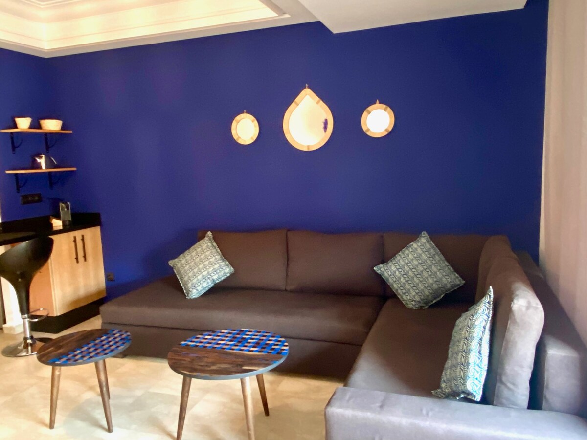 Our apartment is conveniently located in the heart of Marrakech. The train station, numerous cafes, restaurants, grocery stores, and supermarkets are all within walking distance. The airport is just a 12-minute drive away, making it ideal for travelers. • The property offers High-speed Wi-Fi, Netflix & IPTV, air conditioning, an indoor pool, a fitness center, private, covered parking, and 24/7 security & surveillance.