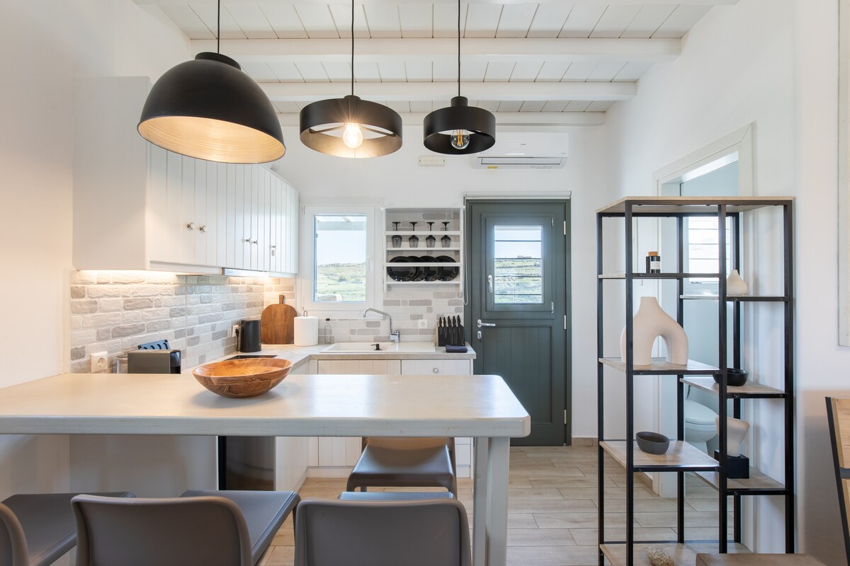 New, fresh and luxury apartment in a peaceful neighborhood only 900 meters from the famous Ornos beach, 1 km from Korfos beach( the best beach on the island for kitesurfers) and 7 minutes drive from Mykonos Town. The ideal location, the unique ambience and the breathtaking view make Ornos Vibes the best choice for the summer vacations in Mykonos. Perfectly combined with Ornos Vibes for a total of 8 guests capacity.