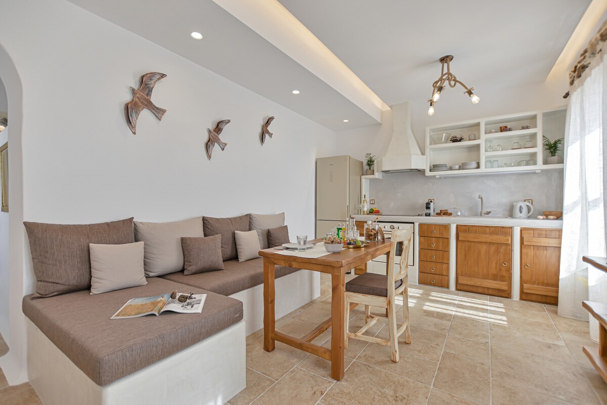 Villa Arismari is located on a serene hillside, surrounded by natural boulders, overlooking the beautiful coast of Orkos. We have a breathtaking panoramic view of the Aegean Sea and our neighboring island of Paros. We are situated between the main beach and smaller bays of Orkos. While enjoying the view that Villa Arismari offers prepare to take your most incredible selfies . Villa Arismari is a beautifully designed villa of Cycladic minimal architecture.
