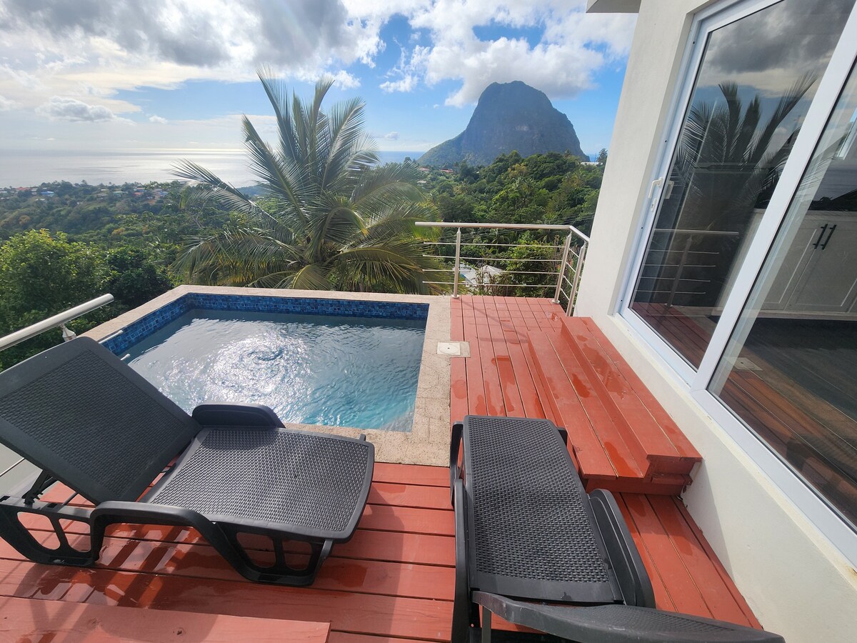 Wake up to sweeping views of the Pitons, the ocean & the town of Soufriere from this private hillside villa. This self-contained floor offers two bedrooms with en-suite baths, a bright open plan living, dinning & kitchen area, and a balcony where you can enjoy morning coffee or evening wine while taking in the scenery. Just under 2kms from the town, restaurants, and beaches, its a peaceful, convenient retreat that blends comfort with the natural beauty of Saint Lucia.