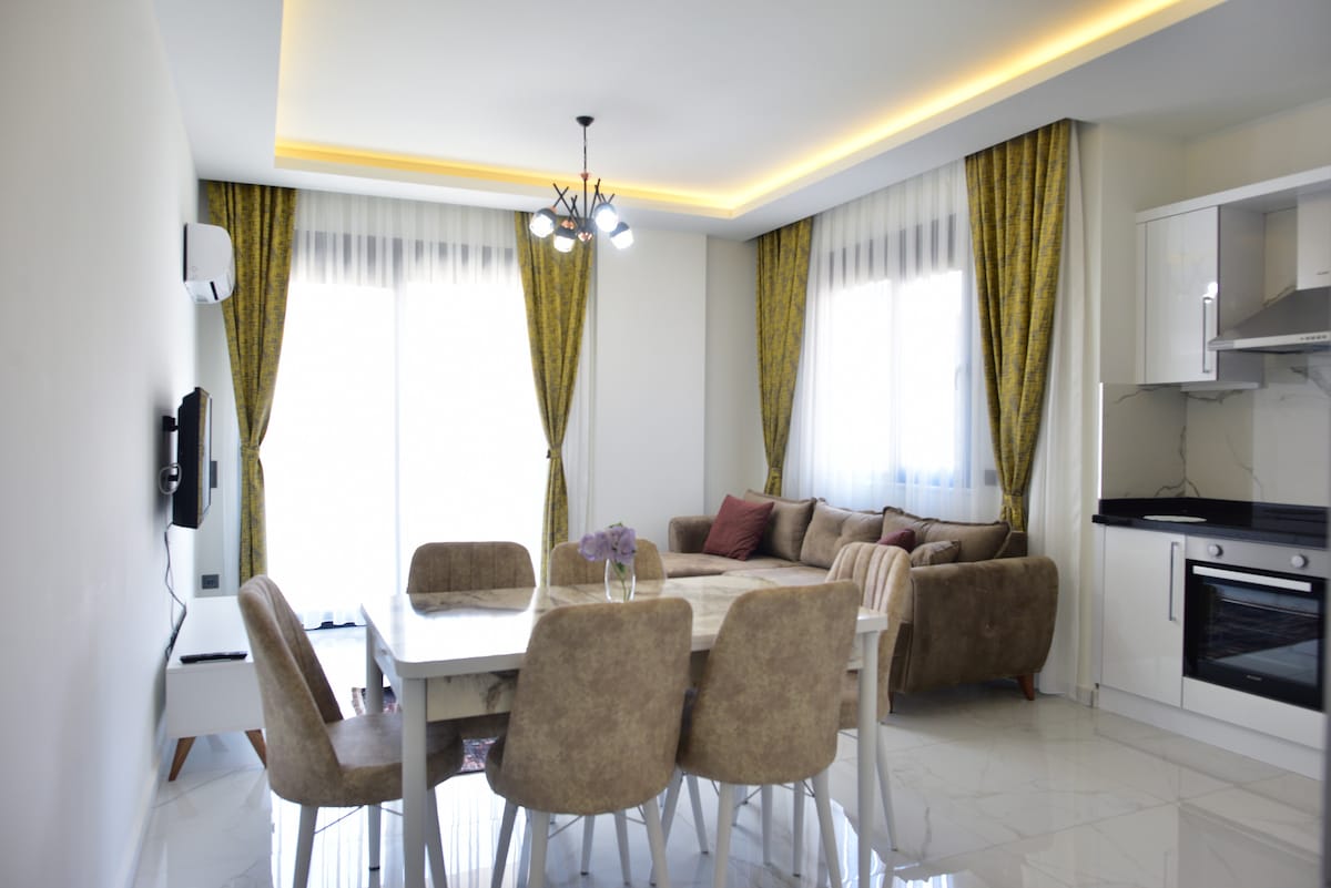 Lovely Beachfront 1 +1 Apt. Lexus Residence (70m2) With new Furniture, Beach access and sea view. All season full activities with big balcony to enjoy your morning coffee and meals Smart Key Self Check in 7 km to Center & 35 km to Gazipasa Airport. Depending on season Large indoor & outdoor pool, Fitness, Water Slide, Tennis Court, Game room, Cinema Salon, Children's playroom. Party room, BBQ area & 7/24 Security (Turkish Bat and Sauna is open on weekends)