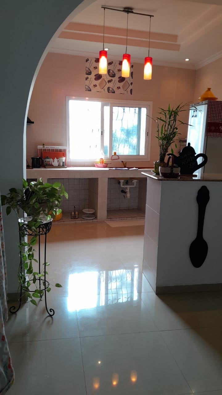 Villa with swimming pool, furnished with an equipped kitchen. It has 4 bedrooms with a capacity of 10 people. Only 3 km from the airport and close to all amenities, it is 9 km from the city center and less than 2 km from the beach. With anti-load shedding kit.