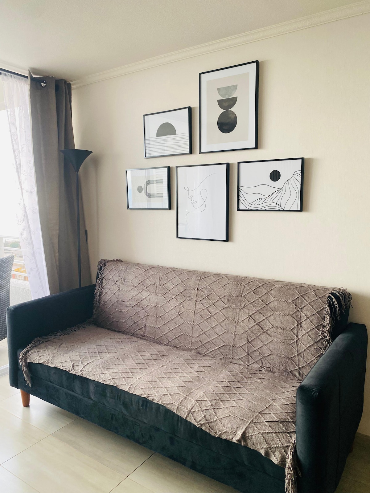 Departamento de un dormitorio, un baño y, un estacionamiento, completamente amoblado, con todo lo necesario para disfrutar de una grata estadía. Consta de una cama de dos plazas (en dormitorio) y un futón en la sala. Consultar de requerir utilizar el futón ya su uso tiene costo adicional por concepto de ropa de cama. Cercano a centros comerciales (Mall), supermercados, parques, áreas verdes, playas, aeropuerto, y otros puntos de interés.