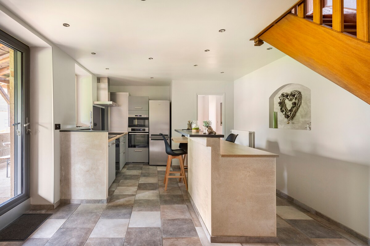 Welcome to our 120 m² CHARMING COTTAGE with panoramic views of the Hautes Côtes de Nuits vineyards and a 2000 m² garden. It dates from the 19th century and was completely renovated in 2015. Outbuildings will allow you to store your bikes safely and securely. This cottage has been awarded the "Vignobles & Découvertes" label. It is perfectly insulated to accommodate you comfortably in SUMMER and WINTER.