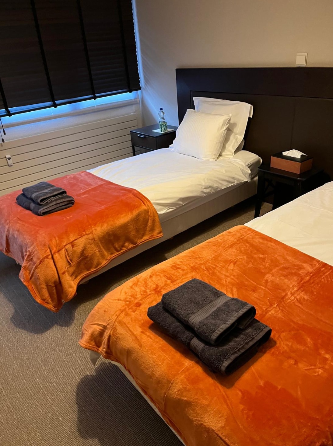The Deluxe Twin Rooms are 40 square meters in size and have two separate beds. You may unwind in your room after a long day in Antwerp. Everything you require for a restful night's sleep is on hand. There is also free Wi-Fi, a flat-screen TV, a minibar, and coffee and tea making amenities in the accommodation.