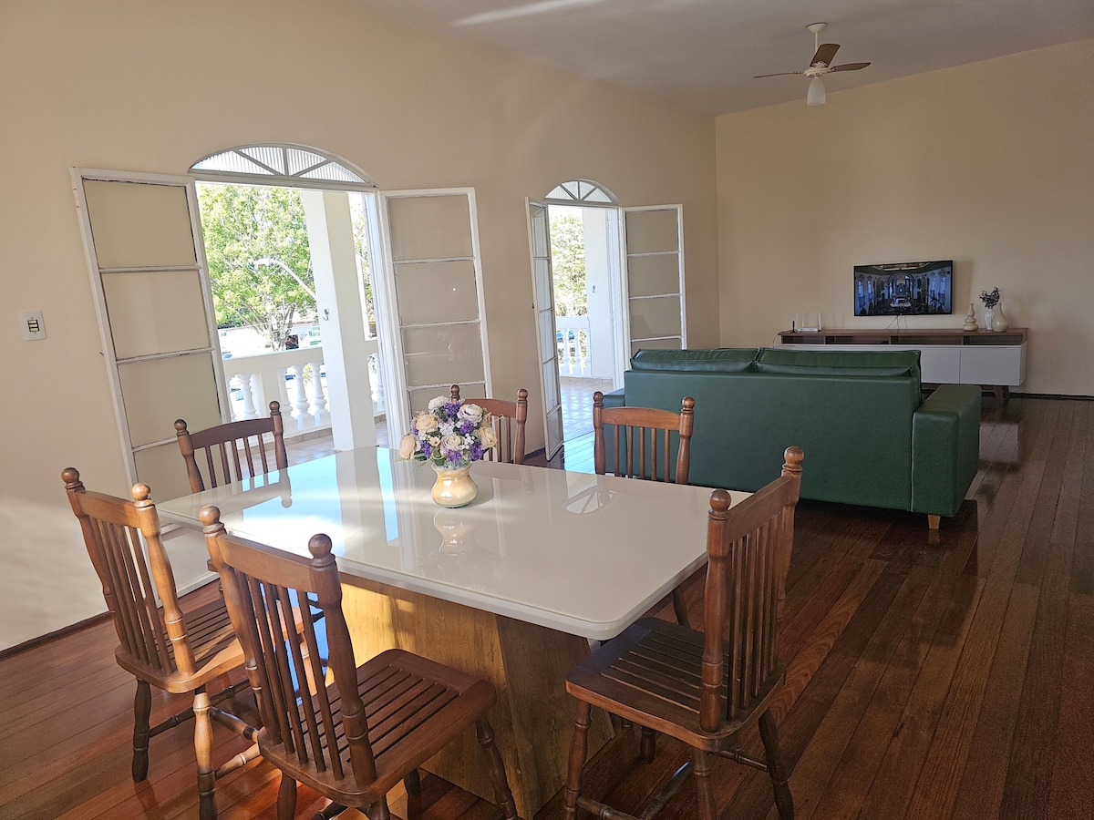 House in the heart of Guaratinguetá, spacious, ideal for religious tourism in the region, by car: - 10 minutes from the National Sanctuary of Our Lady Aparecida - 7 minutes from the Sanctuary of Frei Galvão - 5 minutes from the House of Frei Galvão - 20 minutes from Mosteiro da Sagrada Face The house has 5 air-conditioned bedrooms with ceiling fans, a leisure area with a pool table, a barbecue area and a swimming pool. Garage for 4 cars. Mini chapel. Restaurants and pharmacies nearby.