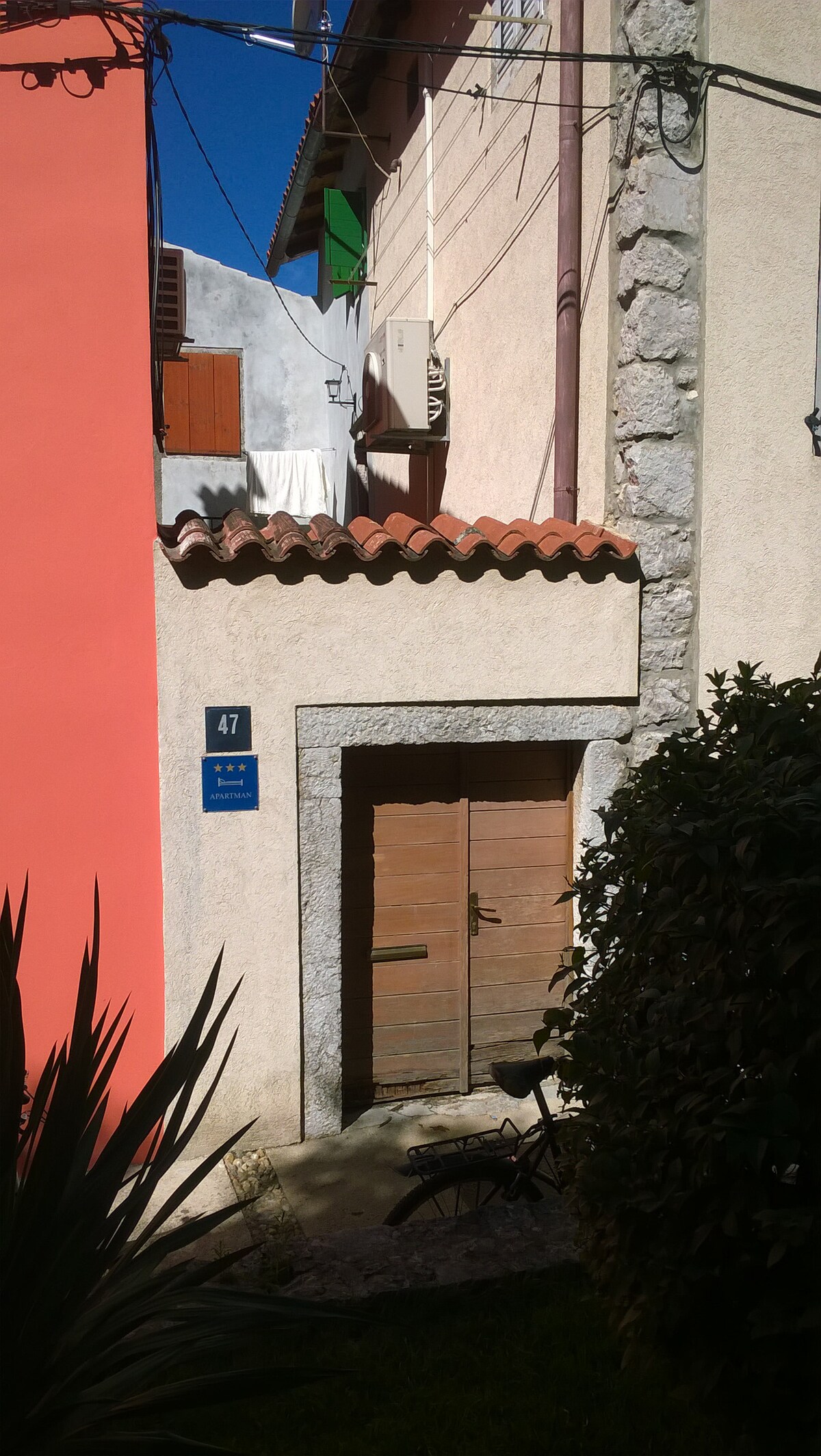 Das Haus liegt ruhig am Rande der Altstadt und ist von der Straße durch eine parkähnliche Allee samt Spielplatz getrennt. Alle Einrichtungen in Cres sowie die Altstadt mit ihren Restaurants, Geschäften und Märkten sind vom Haus aus zu Fuß oder per Rad bequem erreichbar. Das gilt auch für die kilometerlangen Strände, den Fischerhafen oder den Yachthafen. Neben Schwimmen, Schnorcheln, Wandern und Radfahren bieten sich diverse weitere Freizeitmöglichkeiten in der Nähe, von Tauchen bis Bootfahren.
