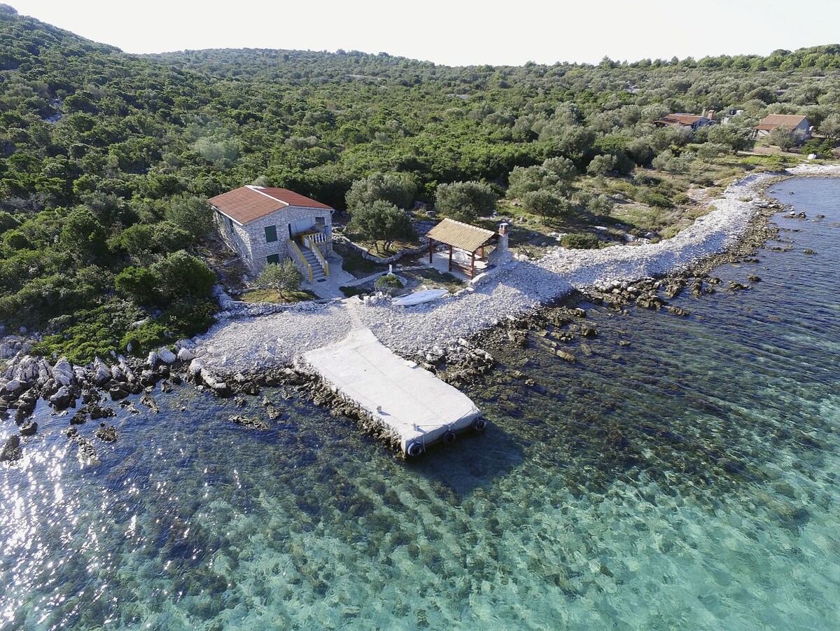 Robinzonska kuća na malom otoku Žižanj sa privatnim vezom za brod, prekrasnim pogledom na more i vanjskim roštiljem sa sjedećom garniturom za potpuno uživanje na svježem zraku. Želite li uživati u moru, prigrliti prirodu i pobjeći od svakodnevnog stresa i tehnologije - ovo je Vaša kuća iz snova!