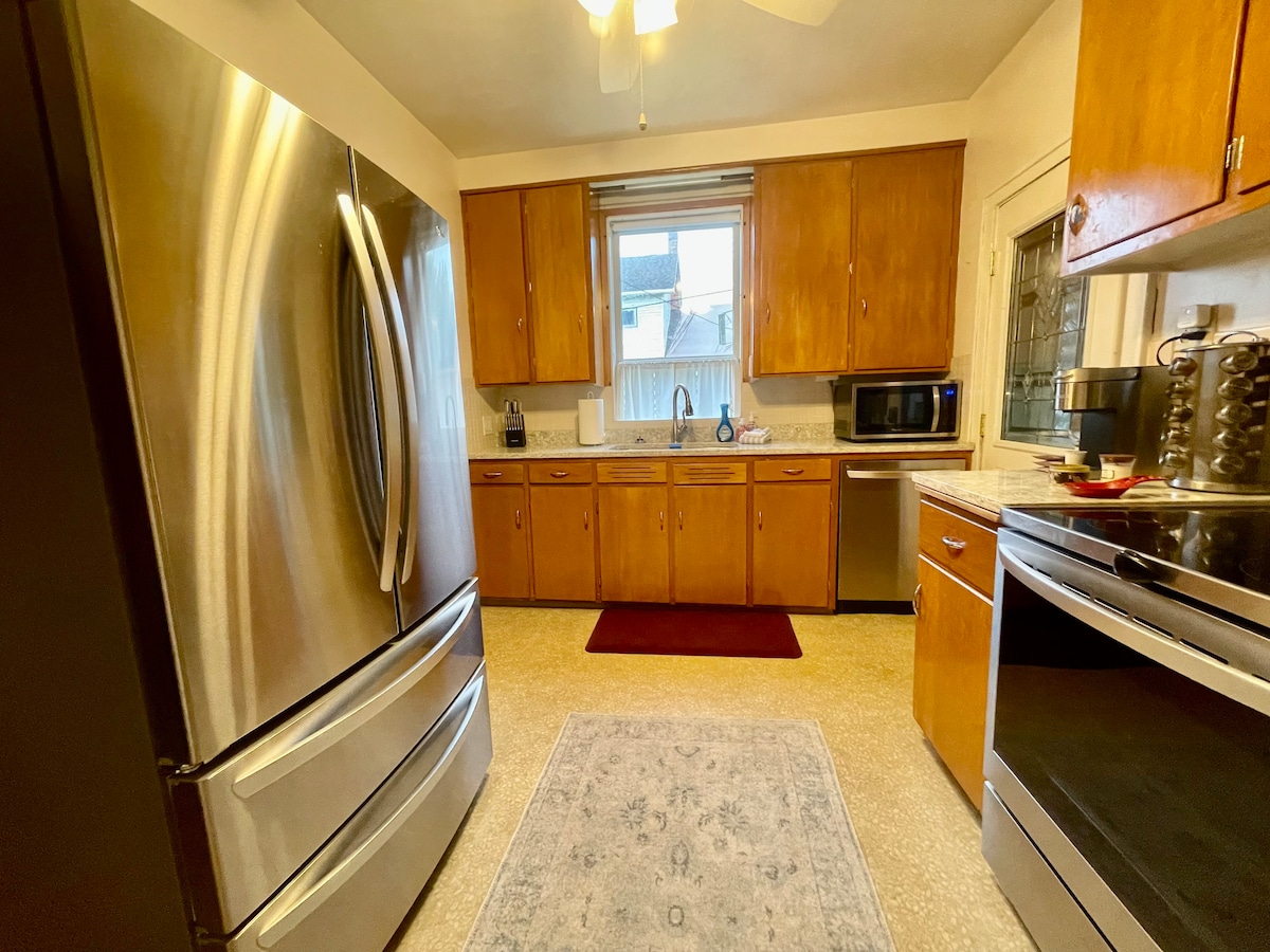 🏰 Historic 1924 castle • Fully renovated 🛏 3 bedrooms • 6 beds • 2.5 bathrooms • Sleeps 10 ✨ Stained glass windows • Vintage charm + modern comfort 🎮 Game room w/ bar, foosball & toys for kids 📺 Flat-screen TVs in every bedroom + living room 🍳 Full kitchen • 2 dining tables • Highchair 🌳 Backyard patio + porch seating 📍 Walk to Cleveland Metroparks Zoo • <10 min drive to Downtown, Tremont & Ohio City A magical stay steeped in history — where vintage character meets modern convenience!