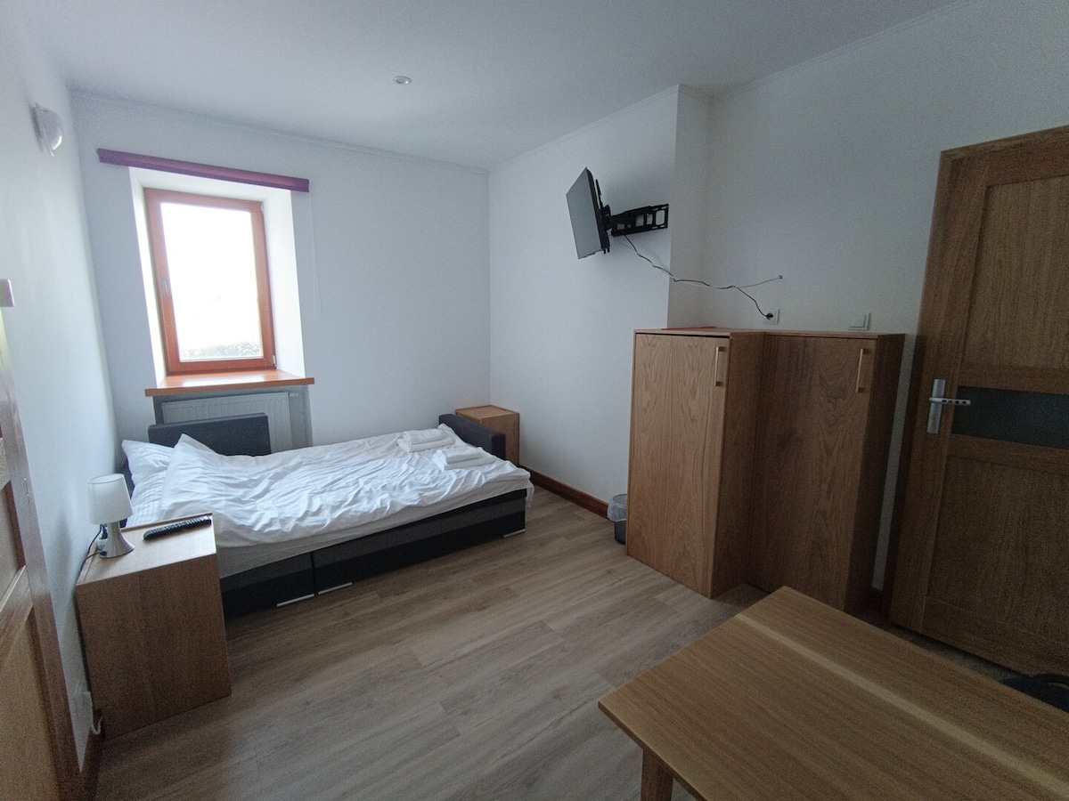 Welcome. For rent, a cozy, high apartment with an area of 30 m2, located 4 km from the Old Town and Lublin Castle and 1.5 km from the railway station. It consists of a large kitchenette connected to the sleeping area and a bathroom with a shower. Equipped with 42" TV, Netflix, HBO, Wi-Fi, fridge, washing machine, stove, microwave, dishes, cutlery, clean towels and bed linen. The apartment has a double bed 140x200cm with a comfortable Ikea mattress and an additional sofa bed.