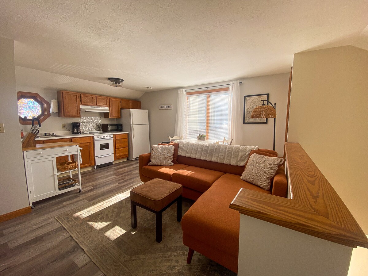 Modern, newly renovated (2016) beach cottage with a funky industrial vibe. Located across the street from the beach, just about a 2 minute walk to reach the sand. Quick drive (15 miles) to Portland and walk or bike to Old Orchard Beach. Our unit is located across the street from the beach, making it the ideal location for your next beach vacation! Located 2 doors away from the local market and deli, grab a sandwich and head to the quiet local stretch of Pine Point beach.