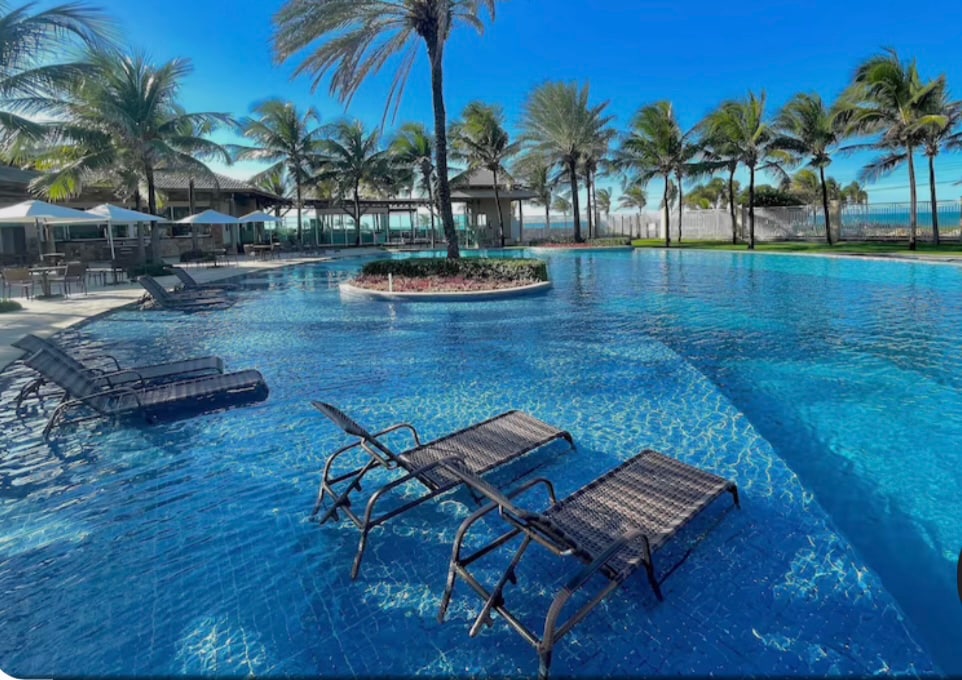 Resort: LOCALIZADO EM FRENTE A PRAIA! ENERGIA INCLUSA NA DIÁRIA TELA/REDE DE PROTEÇÃO PURIFICADOR DE ÁGUA-NÃO TROCA GARRAFÃO Apto Ar Cond. 115m/3 Suítes: CAMA: 1 KING, 1 Queen, 2 Solteiros e 3 Bicamas/Área de Trabalho/MÁQ LAVAR ROUPA Área Comum: 2 Complexos piscinas/restaurantes Beach Tênis/Vôley/4 Quadras de tênis/2 Poliesportivas/Campo de futbol/futmesa/Campos de golf/Caiaque/2 Saunas/Jacuzzi/Espaço kids/Parquinho/Sinuca/Enfermaria/Academia 5 min de carro Beach Park/Supermercados/Drogarias