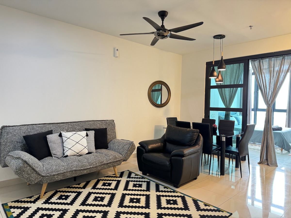 Either you are on a short getaway or long holiday, this new apartment definitely is a perfect place to call home. In this unique building concept that represents green and harmonious living sanctuary, you'll get to enjoy 5 stars sports and games facilities for the active, as well as an oasis of serenity at the quiet pool ! > 17min to LRT | 10min to Subang Airport | 35min to KL | Grabcar Area | Direct link bridge to Citta Mall > High Speed Unlimited WiFi | Free Parking | 24-hr Security