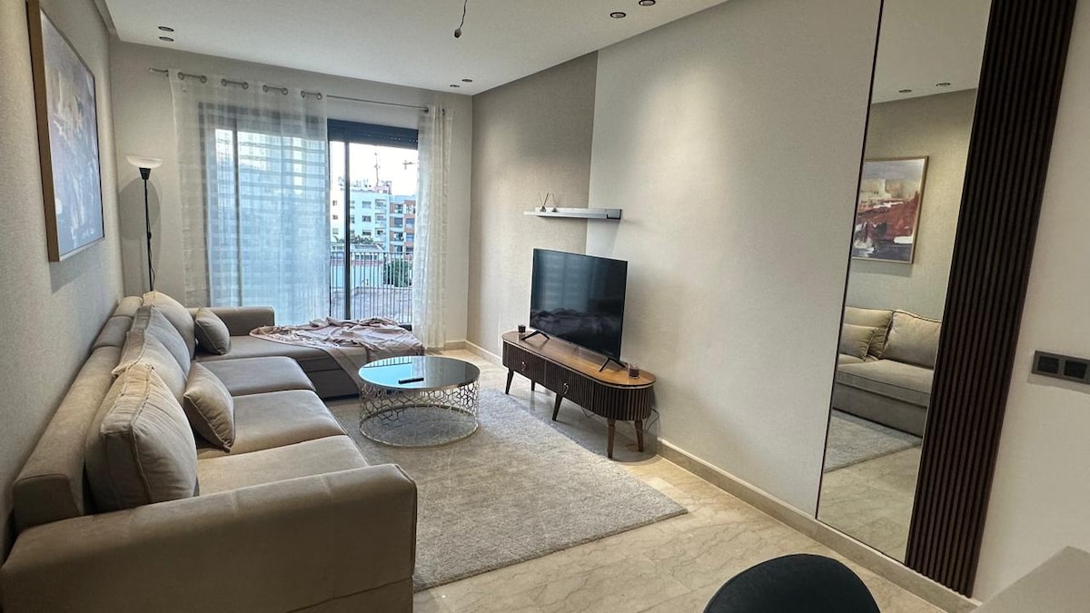 Butterfly 703🦋, a haven of peace where the elegance of a modern residence is combined with the comfort of 5-star hotels in the heart of Casablanca! Relax in a spacious living room with a modern design, equipped with a 55" Smart TV with Netflix and IPTV for evenings of absolute relaxation. The bedroom, a real cozy nest, promises peaceful and restful nights ☁️ From your private balcony, admire the splendid sunsets over the city, making every moment of your stay unforgettable! ✨