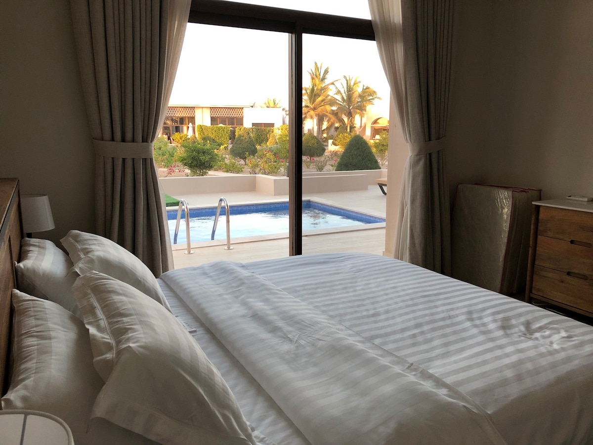 You will staying in a village located between the mountains on a beach. Qantab small village located among the two largest resorts in Oman Al Bustan Palace a Ritz-Carlton Hotel and Shangril-aLa Barr Al Jiddah Resort close to Oman Diving center and Muscat Bay. Room in 1 st floor Villa with private bathroom and preparatory kitchen. Enjoy a quiet retreat near all Muscat attractions in spacious.