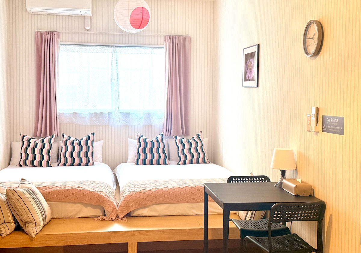 Just a 2-minute walk from the station, Palette House is a cozy and stylish retreat perfect for exploring Tokyo. The industrial-style kitchen includes an island bar, full cookware, wine glasses, and a water dispenser—ideal for cooking and evening drinks. The living room features natural driftwood décor and a comfy sofa, while the Japanese-modern bedroom offers a refined, relaxing space. With thoughtful amenities and warm design, it’s a perfect base for couples and families.