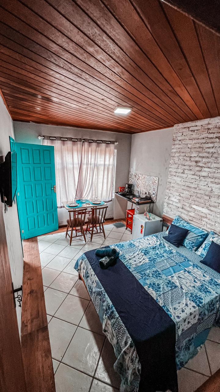 Beautiful one-room suite with built-in kitchen on the second floor of my house just 30 steps from the edge of Prainha, one of the best beaches in the city It contains a box bed, full kitchen, bathroom and ceiling fan. Local Internet 200mb Private kitchen with minibar, stove, microwave, blender and all the utensils to make a meal Workbench for Home-office 4K Smart TV Paid parking near the premises We accept pets Small ladder to the accommodation as shown in the photos.