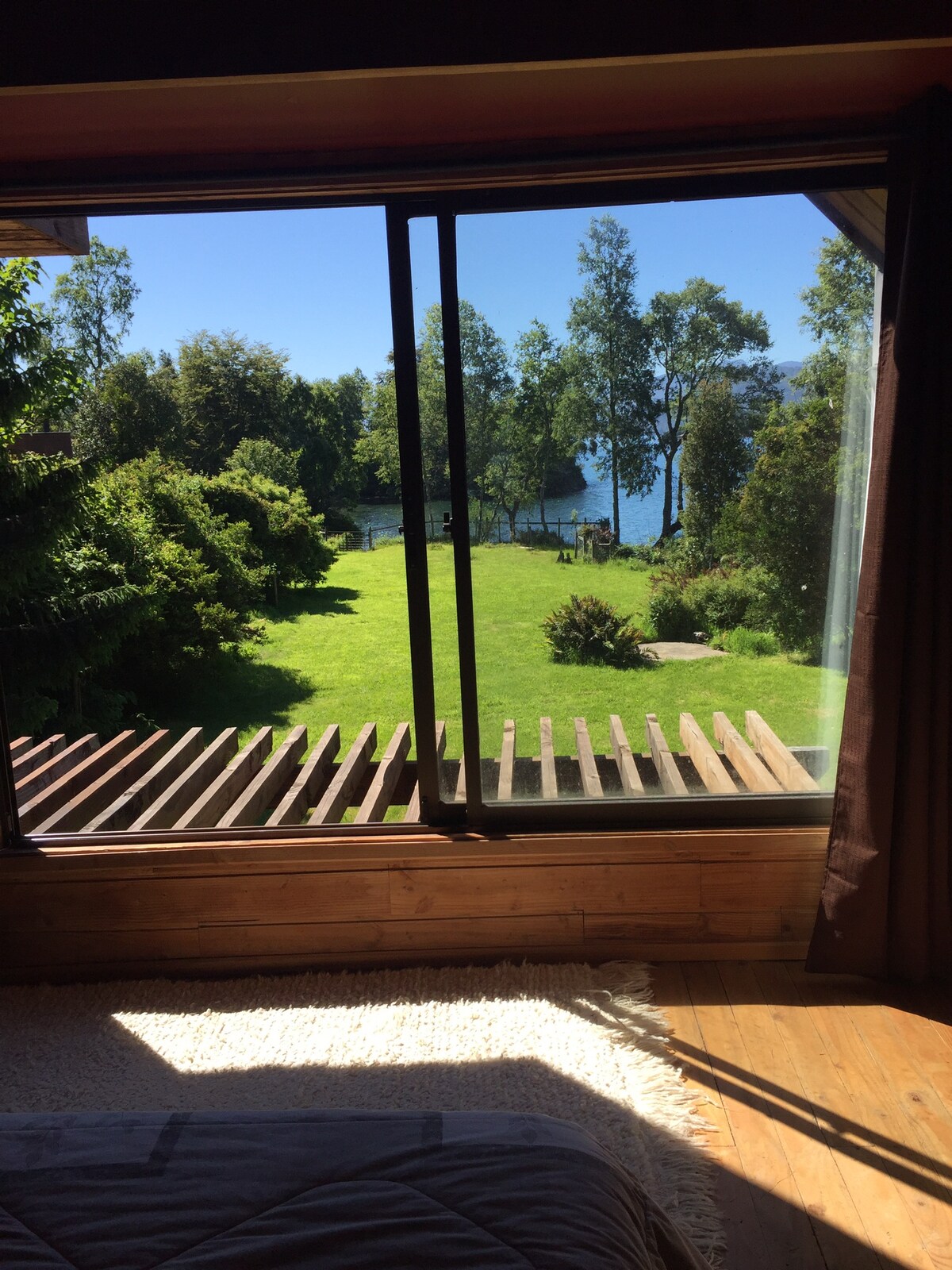 Take it easy at this unique and tranquil getaway. Located on the shores of Lake Calfquen at km 15.6 on the way to Coñaripe. It has a private beach, jetty, baby soccer field, large garden with native trees. The lake and the towering mountains can be seen from everywhere. The distance to Coñaripe is 4 km and to Lican Ray is 17 km. The place is ideal for resting and practicing sports, such as: Fishing, trekking, cycling, and boating in general.