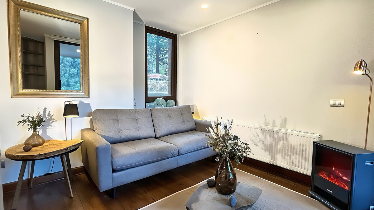 Come to Pucón and experience something unique. This 1 bedroom 1 bathroom apartment welcomes you with a spacious terrace and a spectacular view of the Villarrica Volcano, ideal for relaxing and disconnecting. It has high-speed WiFi and a Smart TV so you won't miss your favorite series or movies. Ideal location: close to restaurants, lake, hot springs and outdoor activities. Just 5 minutes from downtown by car or Uber, or 1 km on foot.