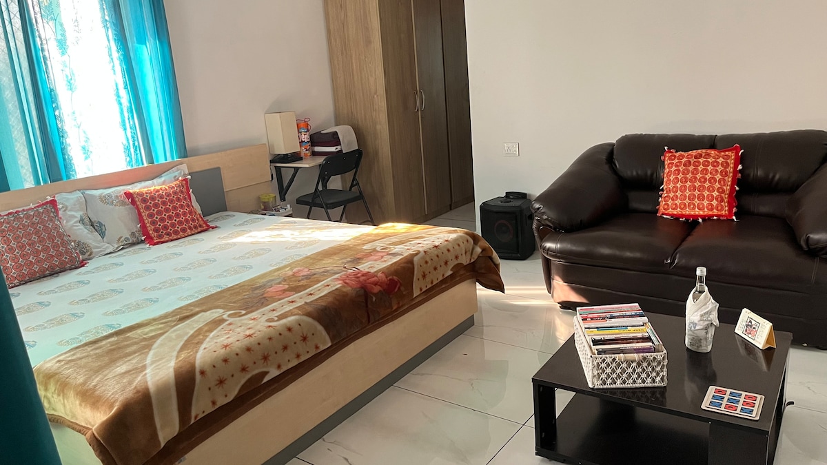 Welcome to our cozy Airbnb, perfect for up to 5 guests and located just 10 minutes from Udaipur’s top attractions. Explore the stunning City Palace, the historic Jagdish Mandir, and stroll along the scenic Pichola Lake with its lakeside cafés and restaurants. Discover the vibrant old city shopping streets, all just minutes away. Our space includes a sunlit living room, a comfortable bedroom, 2 washrooms, a gym, and pool table access, plus parking and friendly golden retrievers to welcome you!