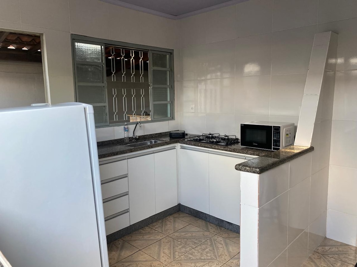 House with 2 bedrooms (1 double bed, 2 single beds with 2 extra beds downstairs), living room, equipped kitchen, 1 bathroom, garage, laundry, with a great location in Araxá, Minas Gerais, next to the Life style gym, close to bakeries and markets.