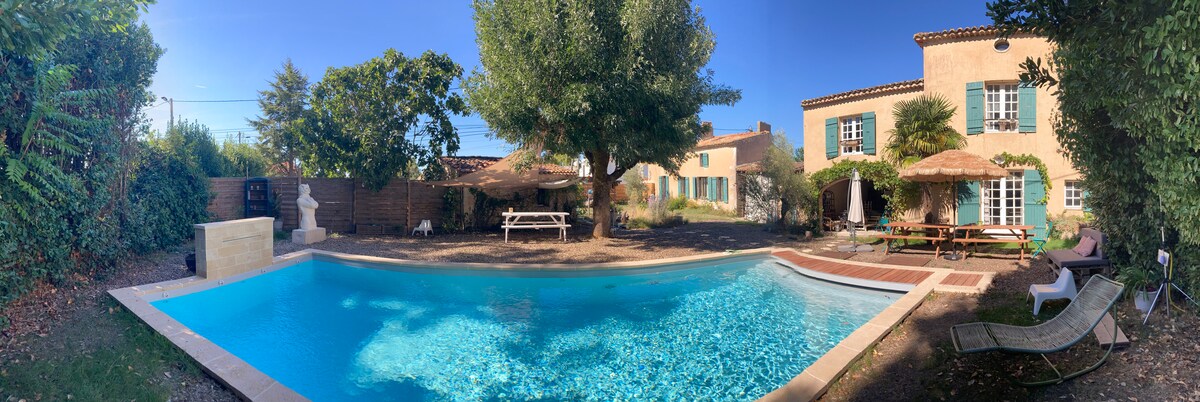 We are pleased to host you in our studio adjoining our house with independent access and private parking. The studio is composed of a 35 m2 living room with air conditioning, equipped kitchen, sofa bed (140 bedding), 12 m2 mezzanine with 160 bed and storage cabinet, shower room and separate toilet. Two fenced gardens. Community swimming pool. We have 2 affectionate little dogs